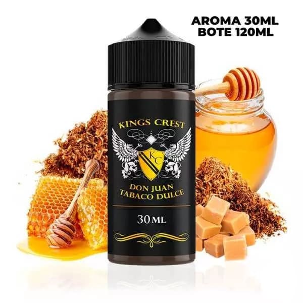 El aroma Don Juan Tabaco Dulce en formato Longfill de Kings Crest suena tan exquisito como adictivo, ya que combina tabaco con un toque dulce de miel.