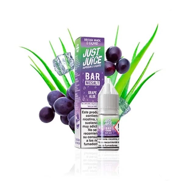 Just Juice Bar Salts Grape Aloe. Una armonía de sabores dulces y frescos. Deléitate con la suculencia de las uvas maduras, complementada con los deliciosos tonos del aloe vera.